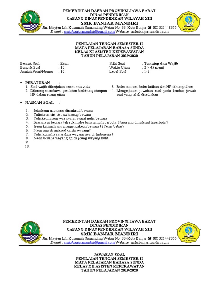 Soal ieu tiasa dianggo latihan kanggo tatahar dina mayunan ulangan tengah semester (uts)/penilaian tengan semester (pts) bahasa sunda sma/ma/smk/mak semester genap. Soal pts ganjil 2021 bahasa sunda kelas 2. Kumpulan buku paket bahasa inggris sma. Soal uas bahasa sunda kelas x xi xii semester 1 kurikulum 2013 ktsp 20172018 ini adalah kisi2 terbaru yang mungkin anda perlukan. Soal pts bahasa sunda sma/smk semester 1 kurikulum 2013 kelas 12 anu bade kopas soal pts bahasa sunda ieu supados nyantumkeun sumber aslina.